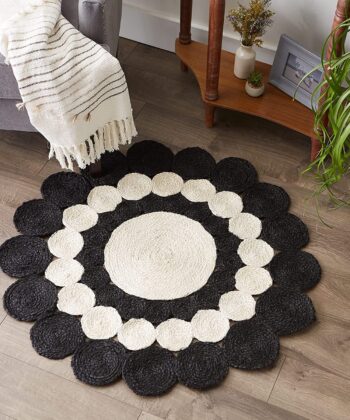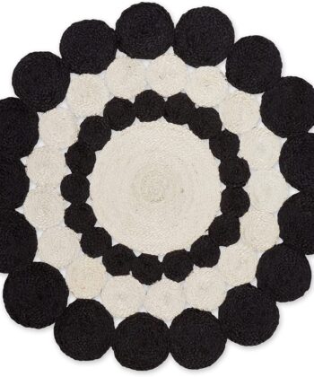 Round Circle Design Black and White Jute Rug