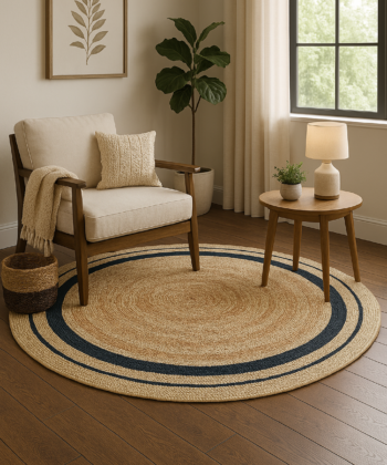 Round Boho Country Charm Jute Rug