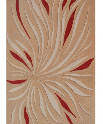 Beige And Red Abstract Pattern Hand Tufted Wool Rug Soft & Durable Carpet