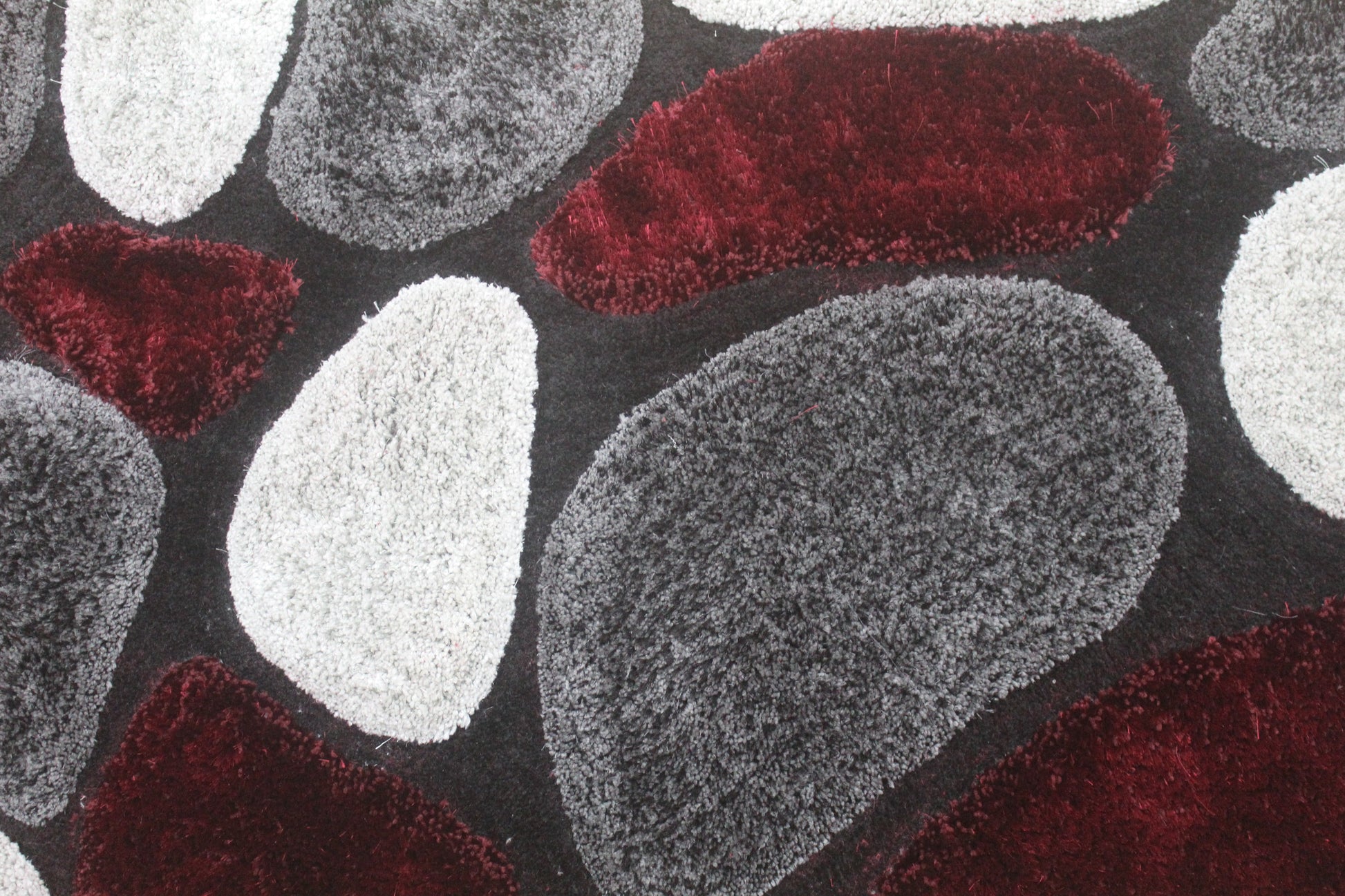 Abstract Pebble Design Shag Rug – Burgundy, Gray & Black Modern Area Carpet