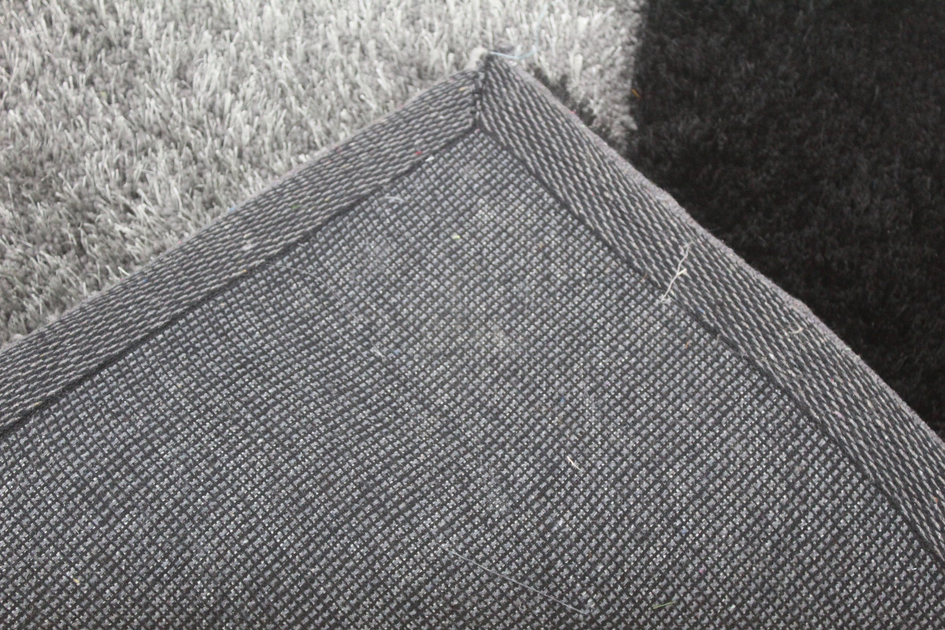 Abstract Tri-Color Shaggy Rug – Black, Grey & Silver Modern Design