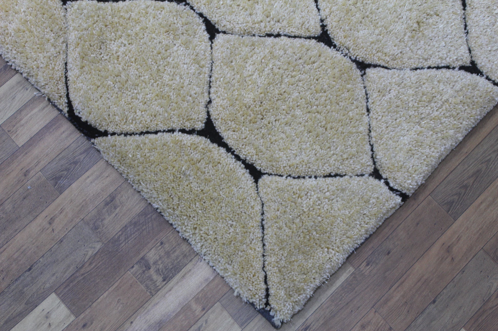 Transform your space with this elegant geometric diamond shag rug, designed to add both style and comfort to your home. The soft beige and cream tones blend seamlessly with modern, contemporary, or classic interiors, making it a versatile centerpiece for any room.