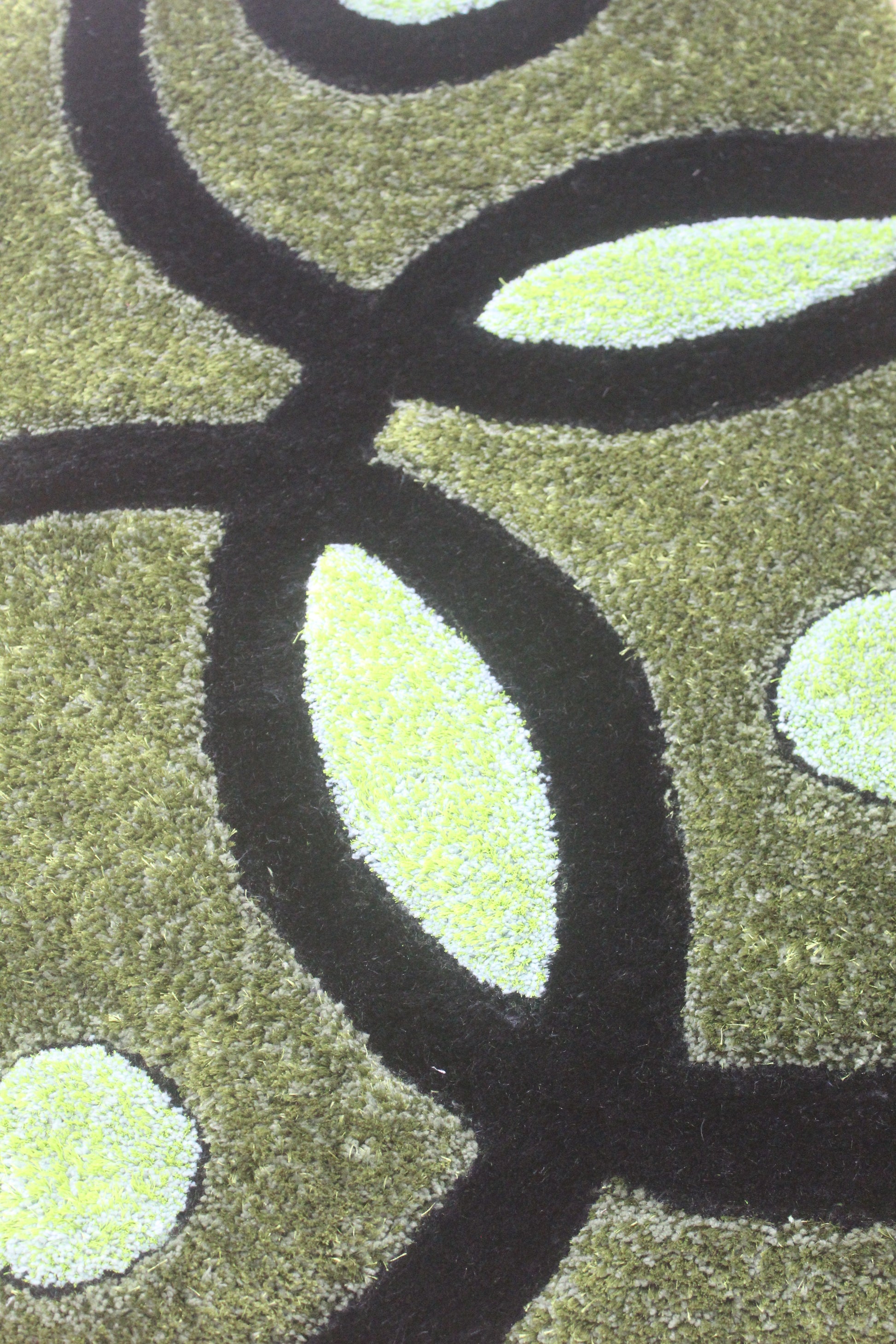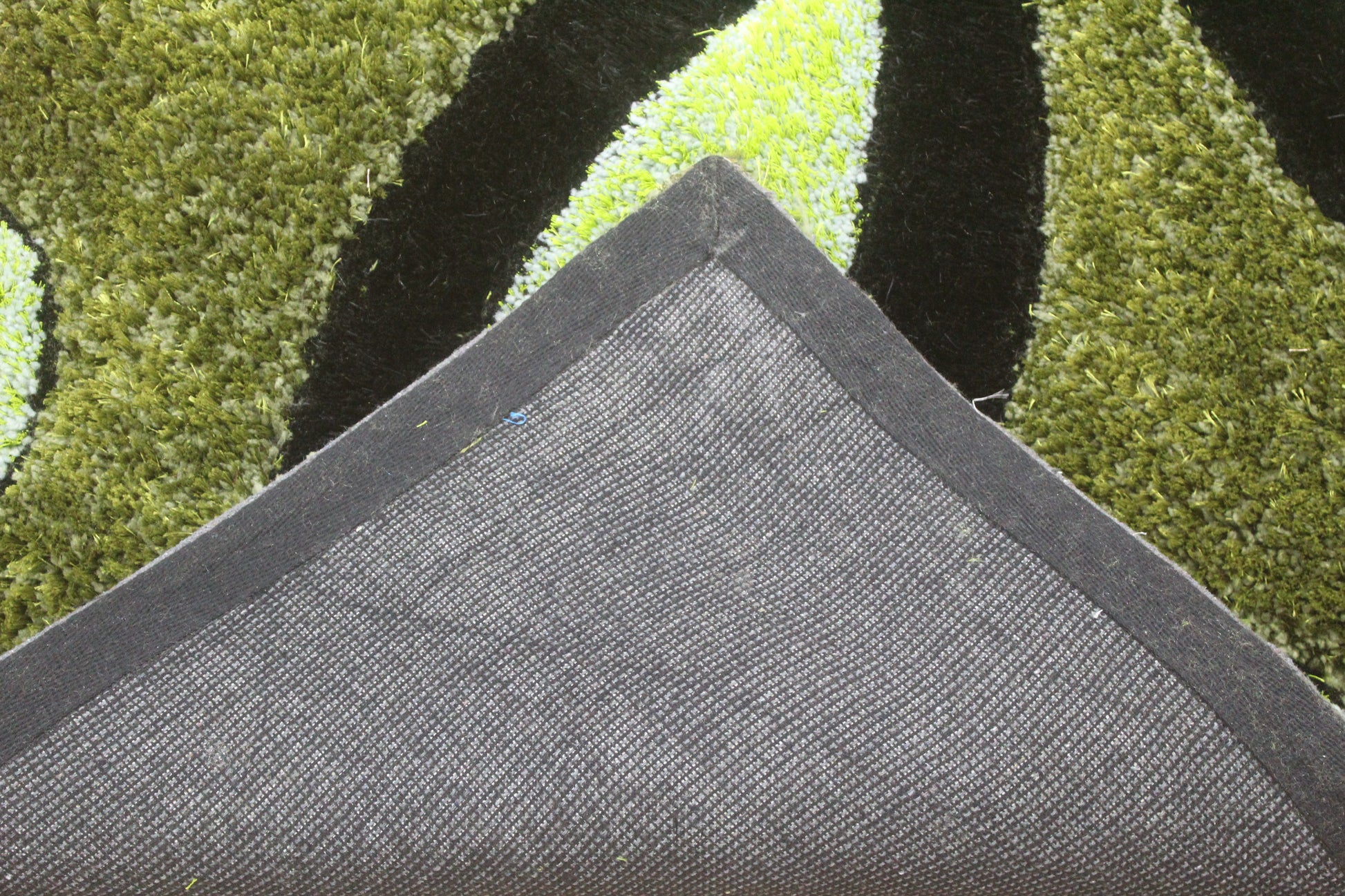 Bring a touch of modern style and comfort to your home with this green geometric shag rug, featuring bold black curves and lime green accents. The soft, high-pile texture makes it perfect for cozy living rooms, bedrooms, or lounge areas.